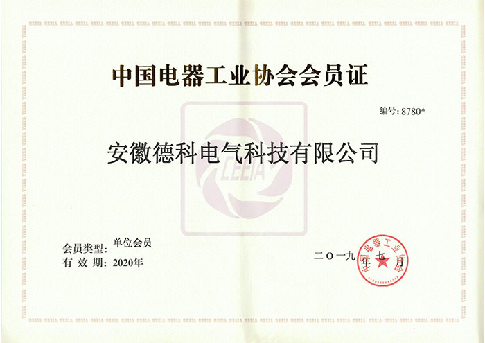 • Сертификат члена Китайской ассоциации электротехнической промышленности