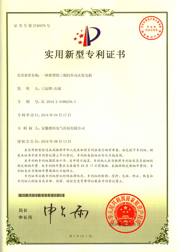 • Провинциальный новый продукт: бесщёточный трёхфазный синхронный генератор