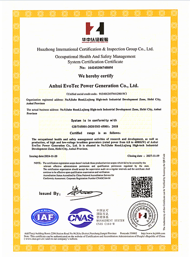 • Сертификат системы менеджмента охраны труда и техники безопасности ISO 45001