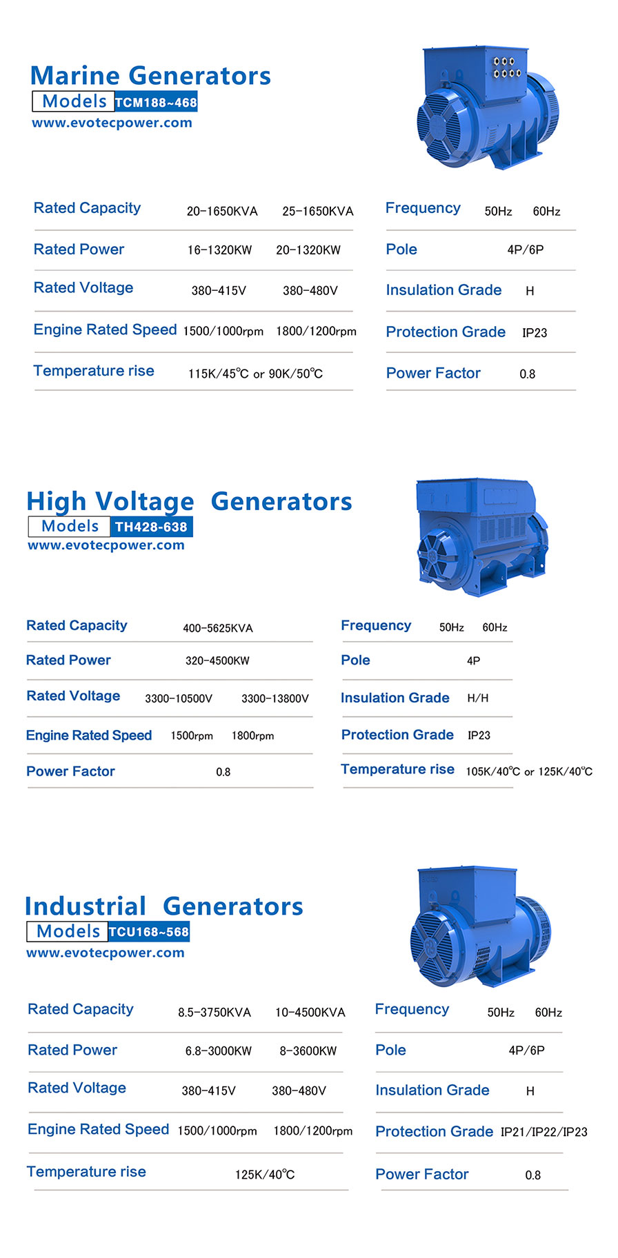 генераторов переменного тока низкого и высокого напряжения.