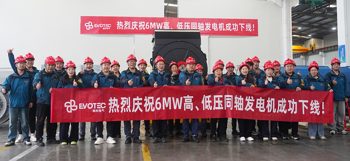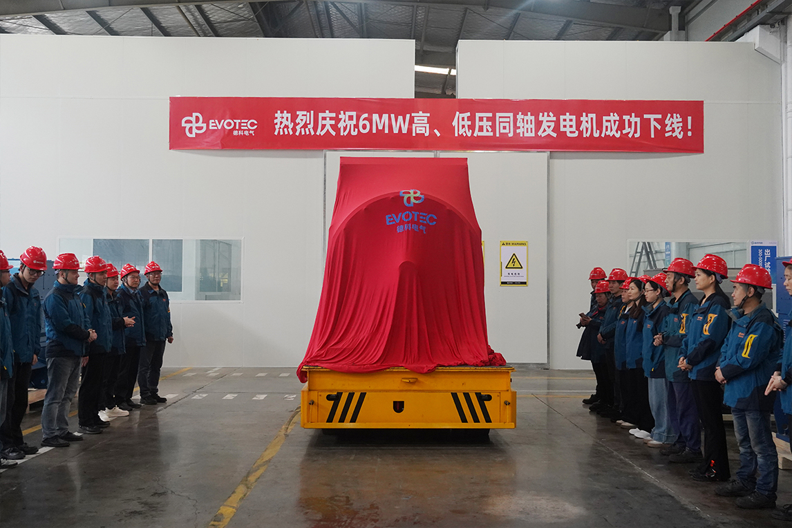 Успешный выпуск соосного генератора 6 МВт высокого/низкого напряжения является ключевым шагом на пути EVOTEC к интеллектуальному производству высокотехнологичного генераторного оборудования.